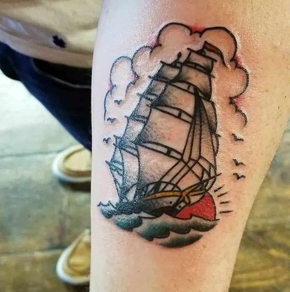 Depicting naval ships or submarines in a memorial tattoo captures the essence of a sailor’s life at sea. These tattoos can feature specific vessels, such as aircraft carriers, destroyers, or submarines, and serve as a tribute to the sailor’s service on those ships. They represent the sailor’s dedication to protecting the waters and ensuring the nation’s security.